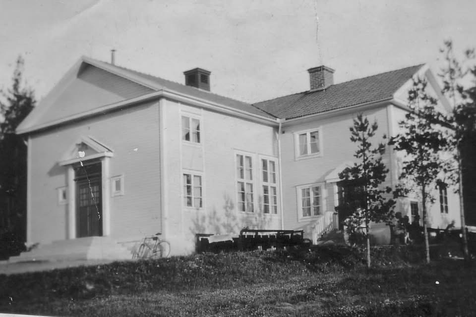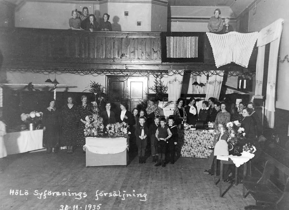 Foto Hölö Mörkö Hembygdsförening: interiör 1935. Notera fönstergluggen på läktaren för projektorn. En glugg för maskinisten och en glugg för singelprojektorn.