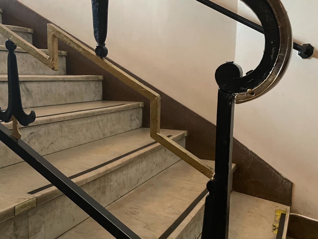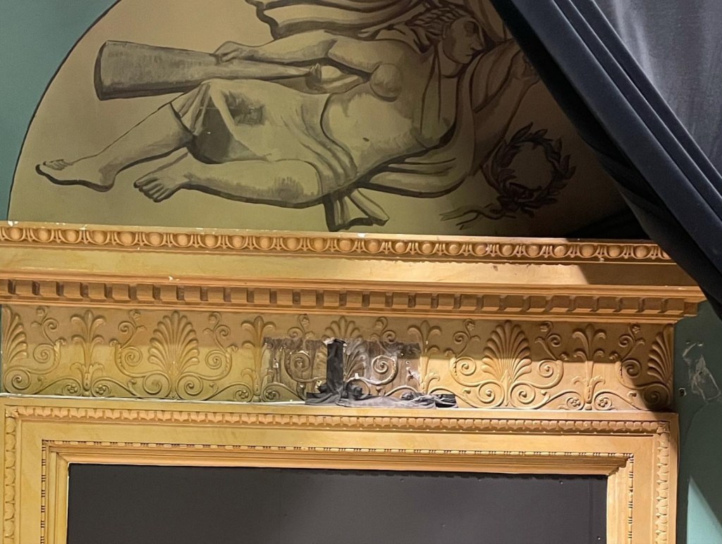 Även om den ursprungliga entréns exakta utformning är oklar, finns flera bevarade detaljer som sannolikt härstammar från invigningen, bland annat: kryssvalv i taket, mässings- och smidesdetaljer i räcken och handledare samt massiva, bemålade spegeldörrar in till salongen