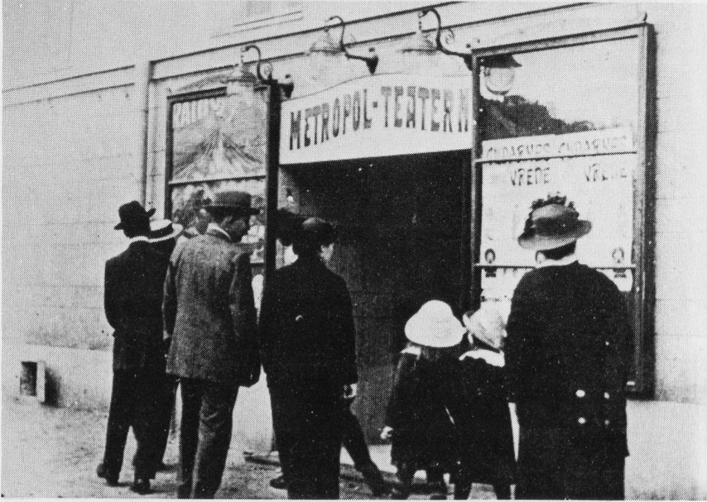 Den hittills enda kända bilden från Metropol-Teatern är från visningen av filmen Gudarnas Vrede. Foto från Rune Waldekranz bok Så föddes filmen.