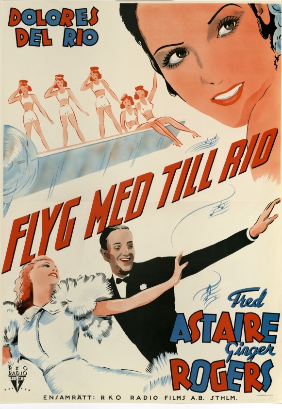 Flyg med till Rio med Fred Astaire och Dolores del Rio.. Svensk premiär 1934-05-01 på Riviera i Stockholm.