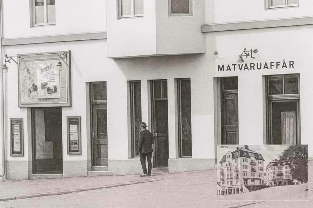Ett välkänt fotografi av Fritz Pettersson från 1941 är på Sagas Biografvaktmästare Anton Malmberg (namne med ägaren Åke Malmberg) vid tjänstesparken som används för att hämta film vid Södertälje Central. Malmberg är också delägare av speceributiken Malmberg & Råström på Storgatan 8.