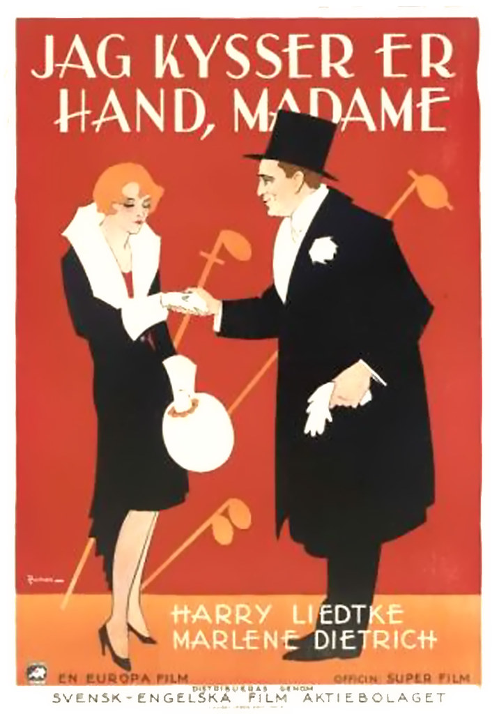 Göran Gelotte beskriver den påkostade musiksättningen på Strand-biografen: ”När filmen Jag kysser Er hand, madame med Marlene Dietrich visades hade man engagerat musiker som inte bara spelade utan även sjöng. Som det stod i annonsen: ’Filmen är beledsagad av sång samt väl vald musik.’”
