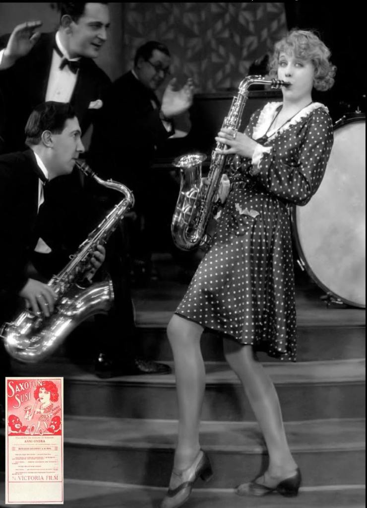Ett annat exempel på musik är filmen Saxofon-Susi med Anni Ondra – ofta kallad Europas Clara Bow – där Strand hyrde in Sveriges då enda kvinnliga saxofonist, ”Saxofon-Pussi”, som dessutom var från Södertälje. Hon framförde filmens ledmotiv live i salongen.